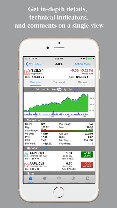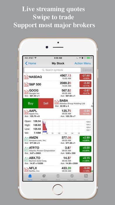 App Storeより引用StockPro - The most comprehensive stock app in the mobile world. Brings you free streaming live quotes, pre-market/after-hour quotes, portfolio monitoring, advanced full screen chart, push notification based alert, economic news, event/earnings calendar, market signal scans and many more...
