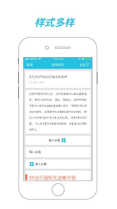 App Storeより引用简单制作图文并茂的长图工具,像拼图一样,选择自己想要的模板样式,进行编辑之后将其拼接成为一张完整的长图。