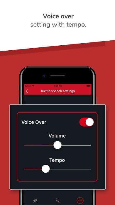 ボイスオーバー設定により、ユーザーはボイスのテンポ/レートを設定またはオフにすることができます。視覚障害のあるユーザーに優れた音声ガイド体験を提供するために、音量調節が含まれています。