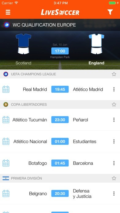 「LiveSoccer」は、無料で使用することができるサッカーをより楽しむことができるアプリです。世界中で俗にトップリーグといわれるリーグの試合結果をリアルタイムで知ることができます。また、自分のお気に入りのチームをあらかじめ登録しておくこともできます。選択できるサッカーチームの数は数千にも及びます!