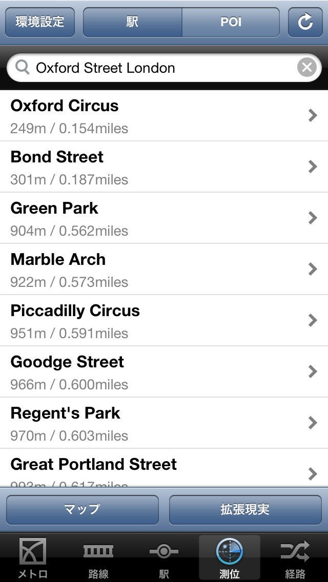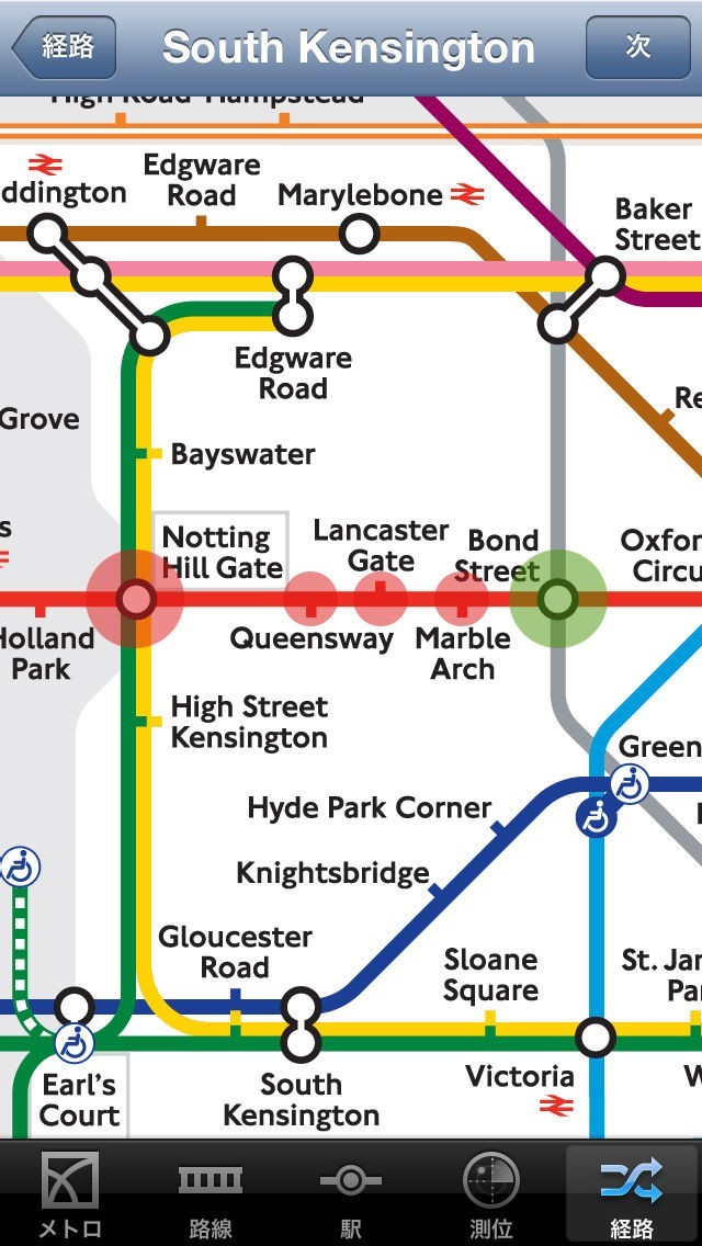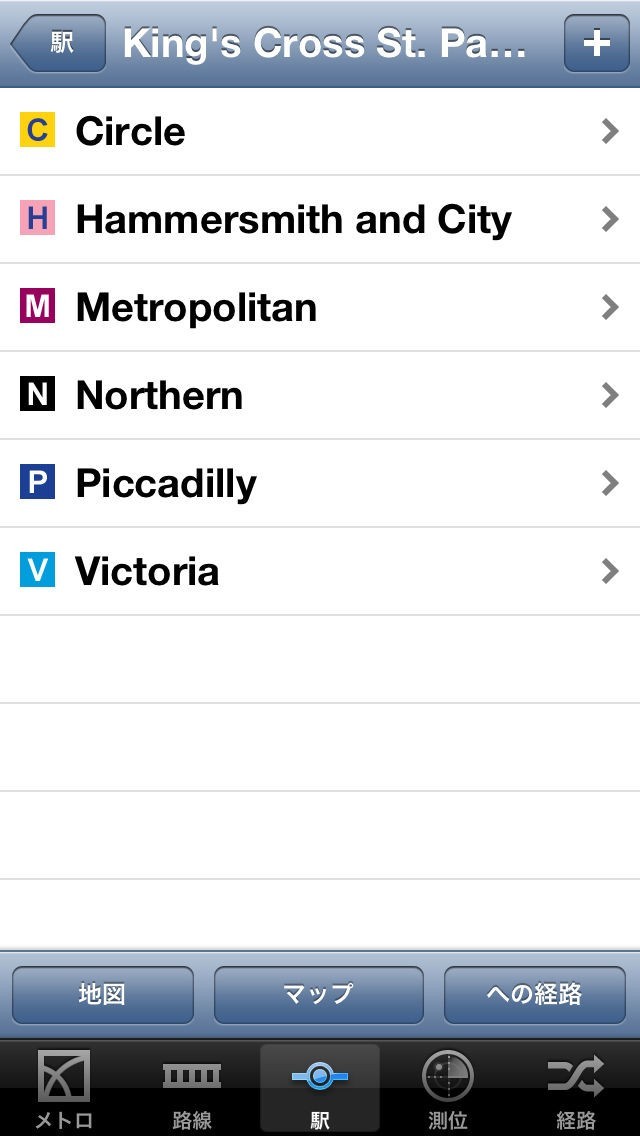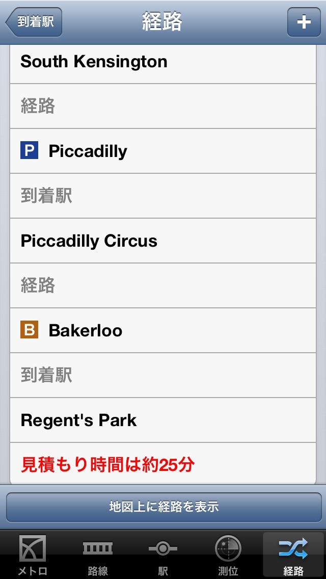 ロンドンの地下鉄 乗換案内のスクリーンショット