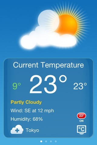 アプリの画面には天気がイラストで表示されます。晴れなら太陽のマーク、曇りなら雲のマークが表示されるので視覚からイメージしやすくなっています。画面もとても綺麗なので、気分よく使えるでしょう。