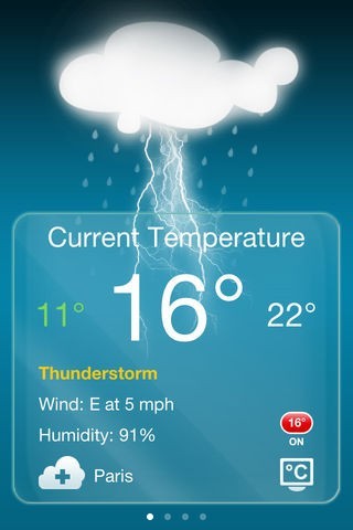 気温はスクリーン画面のアイコンに表示されます。わざわざアプリを開かなくても、すぐに気温の確認ができてしまいます。特に夏場には役に立つでしょう。コマめに気温のチェックして、熱中症に気を付けましょう。