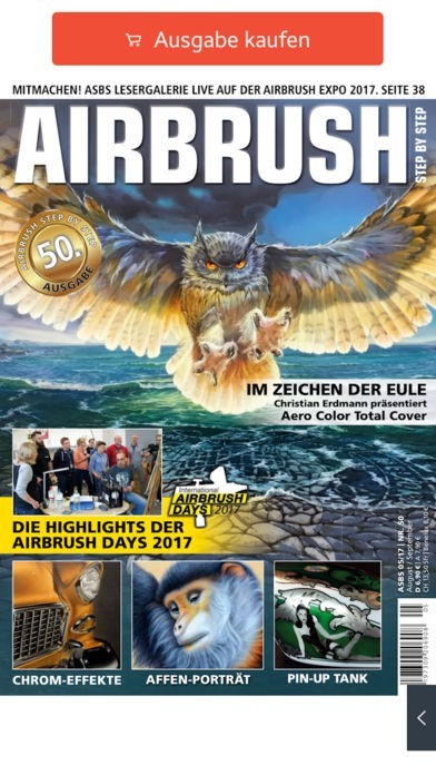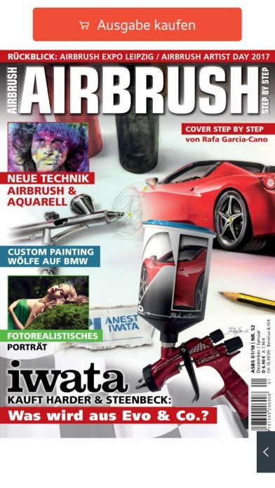 App Storeより引用Airbrush Step by Step ist das Magazin für alle Airbrush-Künstler: vom Einsteiger bis zum Fortgeschrittenen, vom klassischen „Airbrusher“ über den Modellbauer, Body- und Custompainter bis hin zum professionellen Illustrator.