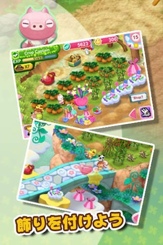 「きれいなペットファーム」は、可愛い動物のお友達と一緒に農園を作り運営していく農園シュミレーションゲームです。農園では、作物をタップして動物たちと育てます。育てた農作物を売って稼いだお金で飾り付けをし、自分好みの農園を作っていきます。飾りはお城やリボン、踏み石など様々です。女の子が好きそうなオブジェも沢山あります。お金を貯めると新しい農園も帰るので、雲の上や山の上など様々な場所の農園を買ってデコレーションしていきましょう。自分好みの農園を作りコンプリートを目指すゲームです。