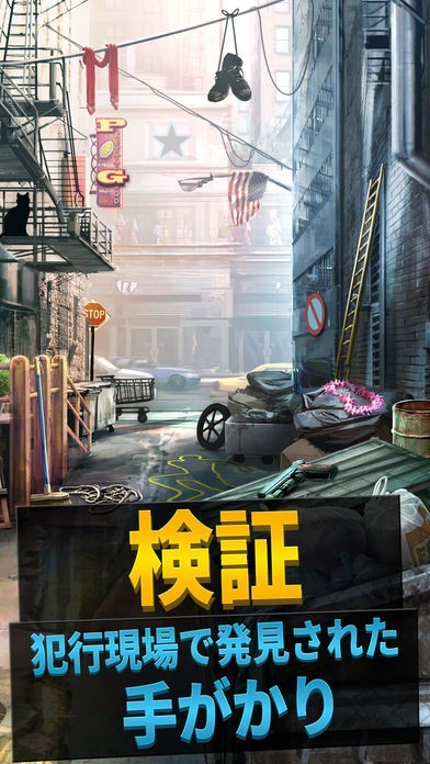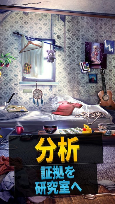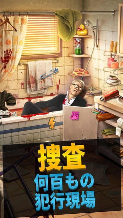 被害者の遺体やあらされた部屋の、現場検証からスタートします。画面をタップすれば、証拠品が集まる。隠された証拠やバラバラになっているアイテムもあるので、隠滅されるまえの状態に戻しましょう。