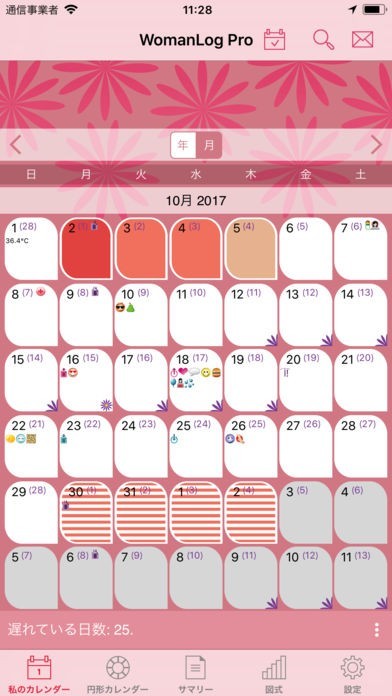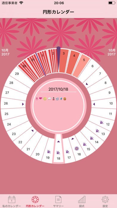WomanLog Pro カレンダーというのは女性のための月経および肥沃に関するカレンダーアプリになります。円形のカレンダーになっており1か月のサイクルも分かりやすくなっており確認もしやすくて良いです。