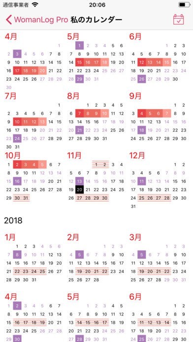 WomanLog Pro カレンダーのスクリーンショット