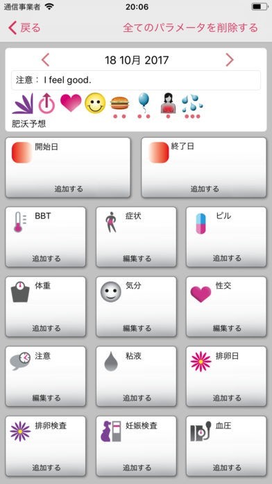 体調の変化を簡略されたアイコンで簡単に入力できて便利