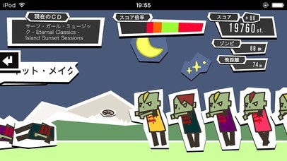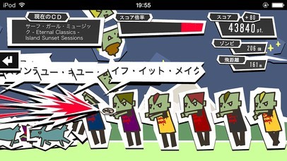 最新のヒット曲を聴きながらフリック操作でゾンビを倒すことができる!