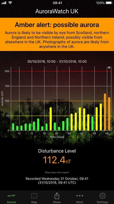 AuroraWatch UK Aurora Alertsのスクリーンショット