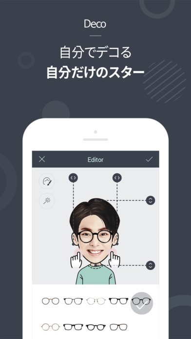 "Starcon"は、動くLNEスタンプが簡単に作れる魅力たっぷりのアプリとなっています。写真を撮影したり、カメラロールからお気に入りの写真を選択して、フレームを選ぶだけと、シンプルに作業が行えます。フレームは全部で25種類以上あり、テーマ別にチョイスが可能、"かわいいベイビー"や"オーマイヒーロー"など、どれもユニークで可愛らしい仕様になっています。また、メガネやヘアスタイルなどがアレンジできる、着せ替え機能も搭載されています。さらには、アプリのショップから、韓流スターのスタンプを購入することができる機能も備わっており、LINEのスタンプショップにはない、レアな韓流スターのスタンプが購入できてしまいます。LINEを利用しており、オリジナルの動くLINEスタンプを、楽しみながら作ってみたい方に最適です。