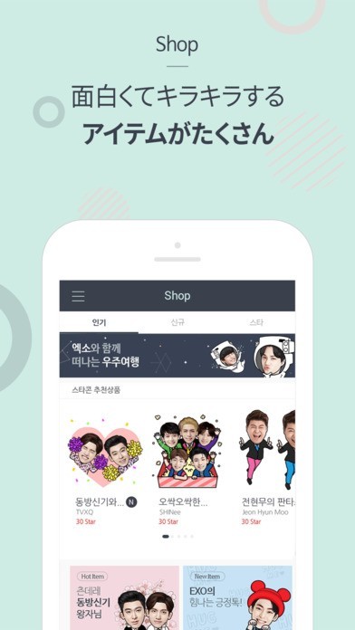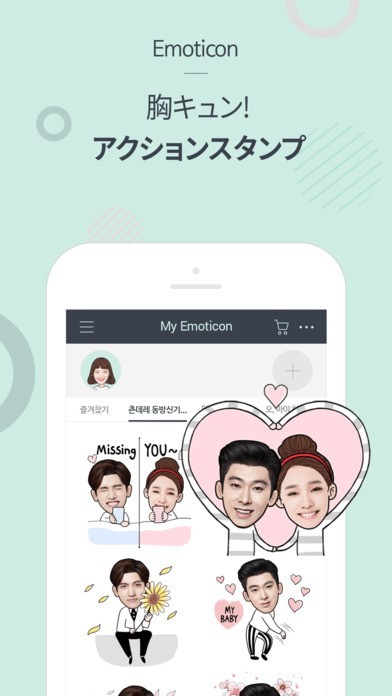 東方神起やSUPER JUNIORなど韓国のスターの顔写真を使って、オリジナルのスタンプを作ることができるアプリです。用意されている様々な背景やアイテムと顔写真を組み合わせることができ、髪型を変えたりメガネをかけさせたりと自分の好みに合わせてアレンジできます。 自分の顔写真も使うことができ、スターと2ショットのスタンプも作れるので、憧れのスターと一緒にいる気分が味わえます。 作成したスタンプはLINEやFacebookなどで実際に使うことができます。