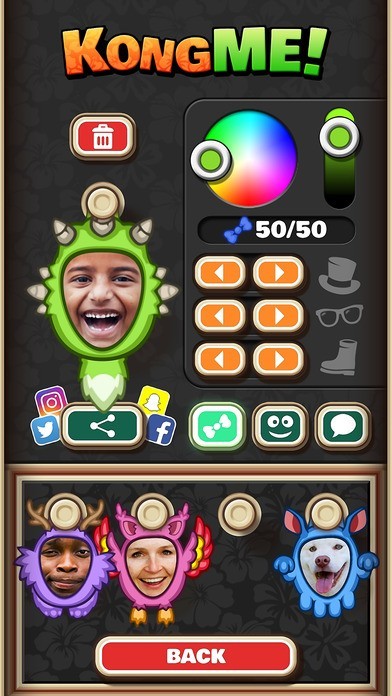 100種類以上のキャラクターが登場するアクションゲーム「Sling Kong」 チンパンジーやブタなど、好みのキャラクターを選んで指先で引っ張り、上へ上へとジャンプさせていきましょう。 障害物を上手に避けながらジャンプを繰り返し、アイテムやコインを獲得していくことがハイスコアへのポイント。 自撮り機能が搭載されているのもこのゲームならではの特徴です。 カメラを起動して自分の顔を撮影したら、アクセサリーやパーツとの合成が可能。 自分の顔を嵌め込んだキャラクターを作り、ゲームキャラクターとして使用できるようになっています。