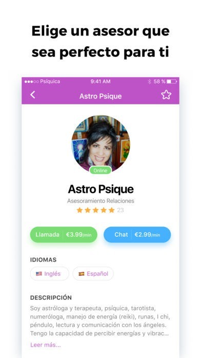 Nuestra app Psíquicos es ese espacio que soñabas encontrar, un lugar único lleno de espiritualidad y asesoramiento sin precedentes. Cuando instalas Psíquicos te conectas con los asesores más talentosos e idóneos del planeta.