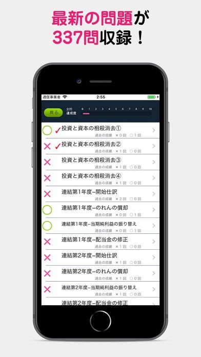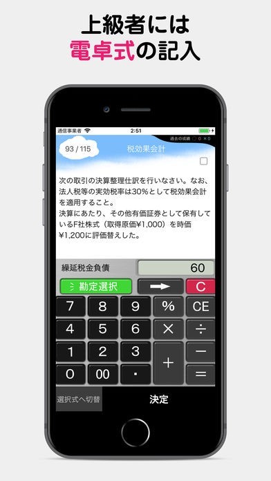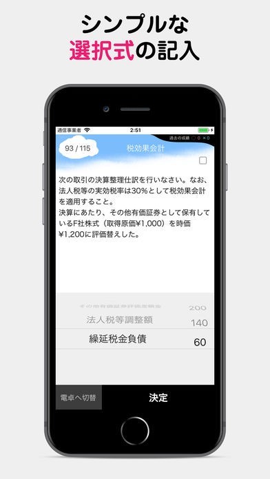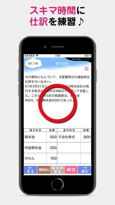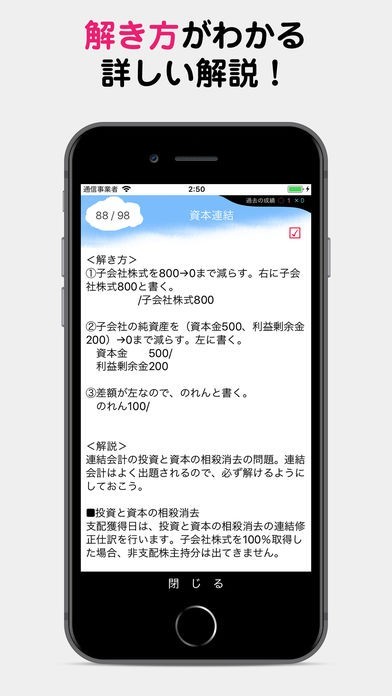 移動中やちょっとした空き時間にも手軽に開けて勉強できるので助かります。簿記2級試験に沿った問題でとても勉強になります。
