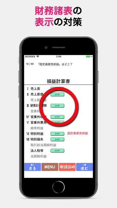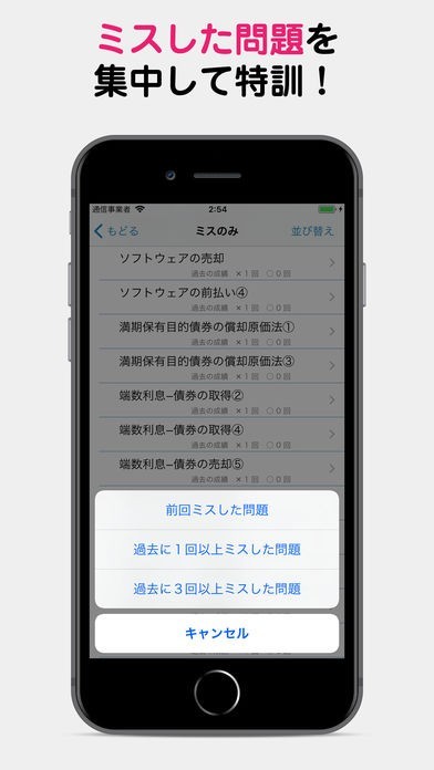 このアプリ1つに簿記2級の最新問題から過去の問題まであらゆる問題がつまっているので、対策は万全です。教材を持ち歩いたりする必要がないので荷物もかさばらず、移動中や休憩時間、家事の合間など、ちょっとした空き時間を有効活用して試験対策ができます。