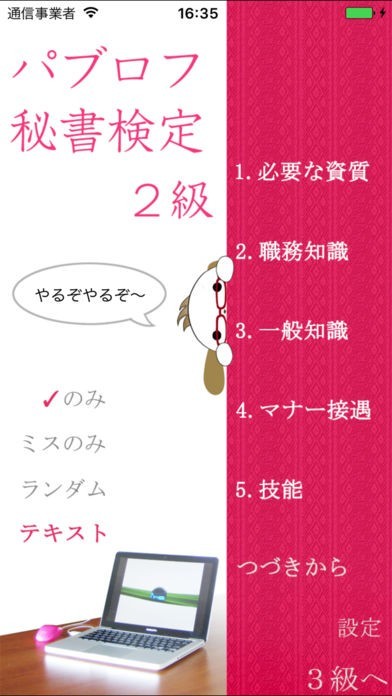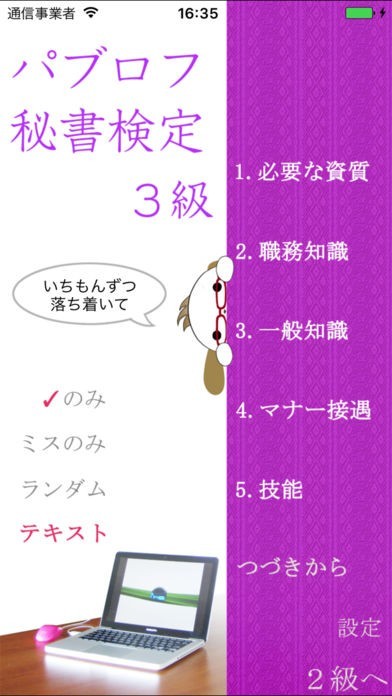 ビジネスマナーや一般需要式などを効率よく学ぶことができる秘書検定の2級と3級の検定試験対策ができるアプリです。過去問題を分析し、本番を想定した5択問題で実力をつけられます。