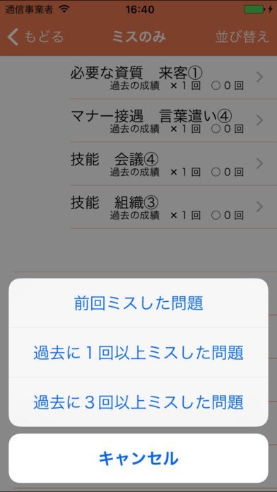 間違った問題だけをチェックできる!間違った回数別に問題振り分け機能が復習に便利