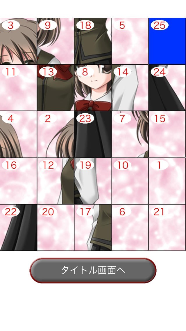 スライドパズルをクリアしてヒロインの絵を完成させるゲームです。難易度が5段階にわかれているので初心者や苦手な人でも自分のペースできます。難しそうでもコツをつかむと早くクリアできるようになると思います。操作性も良いのでスムーズなのでイライラさせられることはないです。ちょっとした空き時間にできるので暇つぶしに最適だと思います。パズルは解けると独特の達成感がありますが、このゲームは解くだけでなくクリア後に可愛い絵を見れるご褒美があるので一粒で何度も美味しいそんな感じのゲームです。スライドパズルが好きでかわいい絵が好きな人にはピッタリなので一度は試してみると良いと思います。