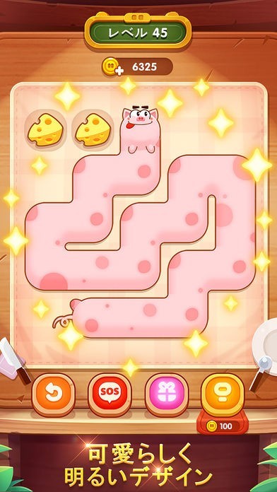 App Storeより引用[Foodie - Fill One Line Puzzle] は、シンプルで楽しく簡単に遊べるパズルゲームです。可愛い小ブタをドラッグして、一筆書きでできるだけ早くボード上の食べ物を全部食べさせてあげましょう!