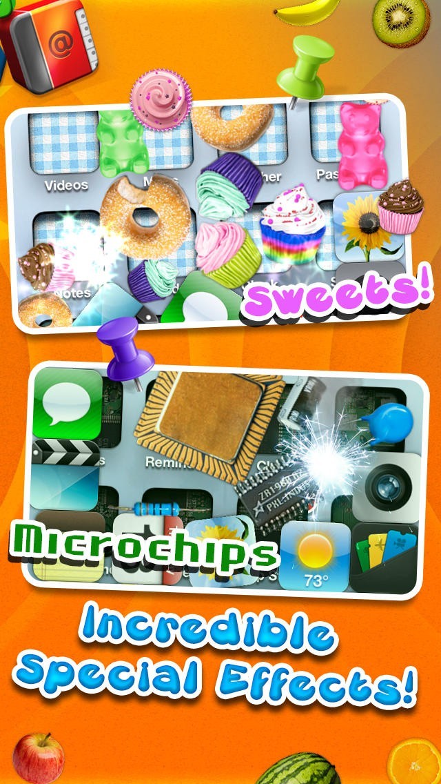 アイコンが無重力状態になったかと思えば、カラフルでクレイジーなオブジェクトがアイコンと一緒に画面を動き回り、一方で海底を泳いだり、雪が降ったり!!