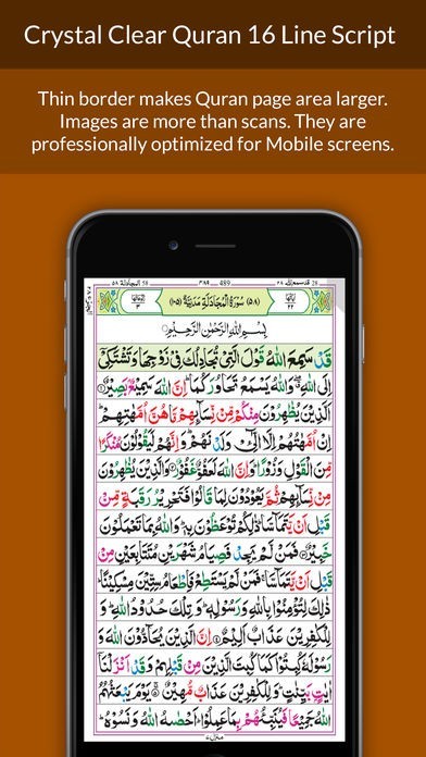 - Classic 16 Line Quran script in book style reading experience, with an easy to use interface