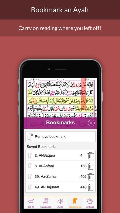 App Storeより引用Quran 16 Line is an intuitive Quran app that enables you to read in the classic 16 Line script with interactive audio and translation features. The 16 Line Quran is used by millions of sub-continent muslims across India, Pakistan, South Africa, UK, USA and around the world. Simply tap and hold on any ayah to play the recitation, memorize, bookmark or view the translation.