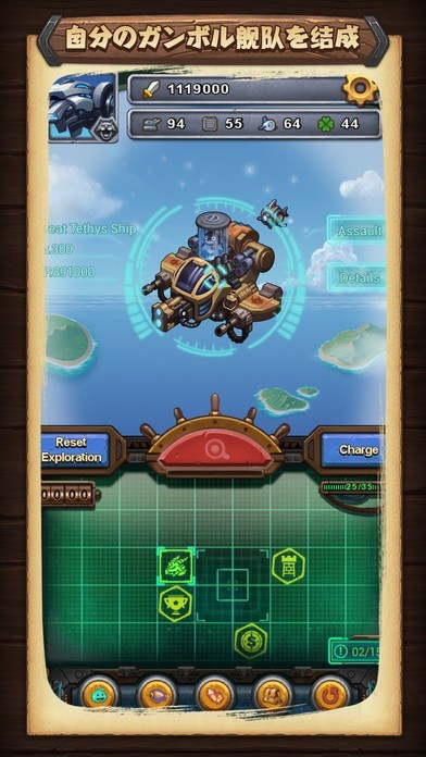 ●自分のガンボル艦隊を結成してレベルアップし、天空の城で世界各地のプレイヤーに挑み、彼らの資源を勝ち取る