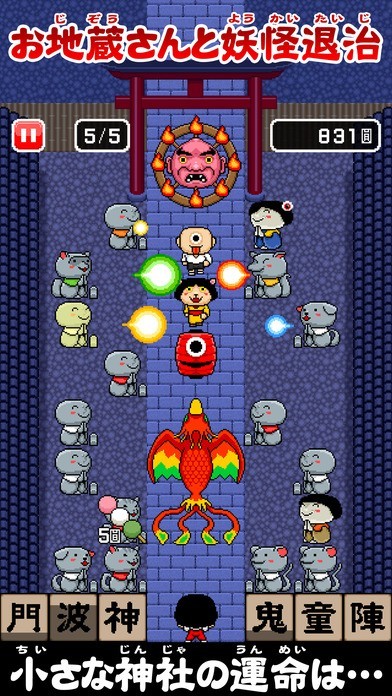 昼と夜とで違う姿を見せる小さな神社を舞台にどんどんステージをクリアしていくゲームアプリがお地蔵さんで悪霊退散!妖怪神社です。 ゲームのイメージは神社を訪れる人々からの賽銭を使って神社の設備を強化していく経営ゲーム、そして夜になると神社にやってくる妖怪たちを撃退する拠点防衛ゲームを組み合わせたものです。2種類の全く違ったスタイルのゲームを一度に遊ぶことができる欲張りさんにはたまらないゲームシステムとなっています。戦略性と自由度の高さに定評があります。