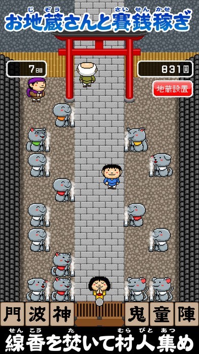 参拝客からお賽銭を回収!お地蔵さんや魔方陣を強化して悪霊を撃退!