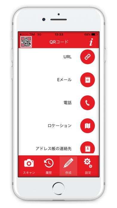 QRコードに含まれている情報の読み取りだけでなく、新たに新規作成することができます。 読み取りは内蔵カメラを対象のコードに向けるだけで簡単に完了し、連絡先が含まれていればそのままアドレス登録まで連続して行うことができます。 新規作成は文章の挿入だけでなく、アドレスやリンクなども含めてつくることが可能です。