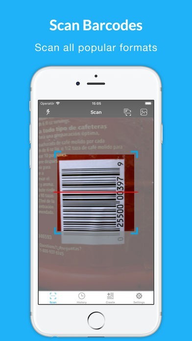 ・対応するフォーマット: QR code, EAN 13, EAN 8, UPC-A, UPC-E, Code 128, Data Matrix, PDF417, Aztec, Interleaved 2 of 5, Code 39, Code 93, Codabar, DataBar.