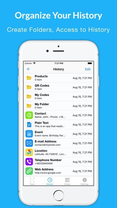 ・以下のような全てのタイプのQRコードを自動検出; 連絡先、メール、SMS、テキスト、イベント、ウェブサイトのURL、電話番号など