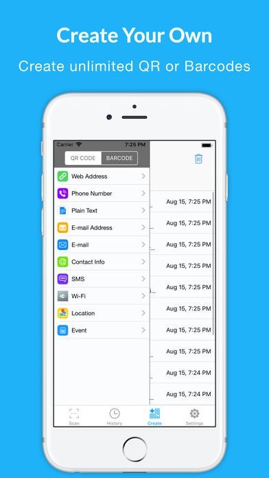 ・あらゆるタイプのQRまたはバーコードを簡単に作成、シェアできます。