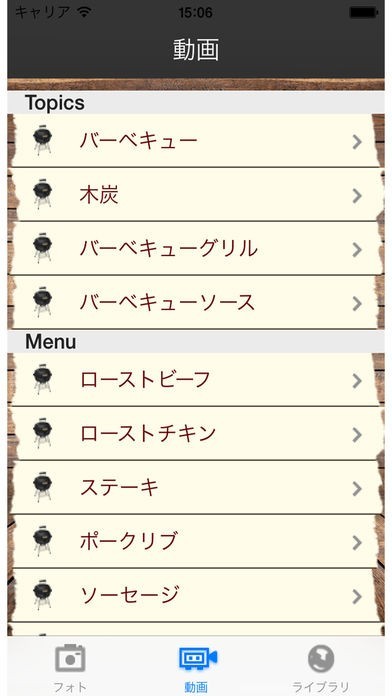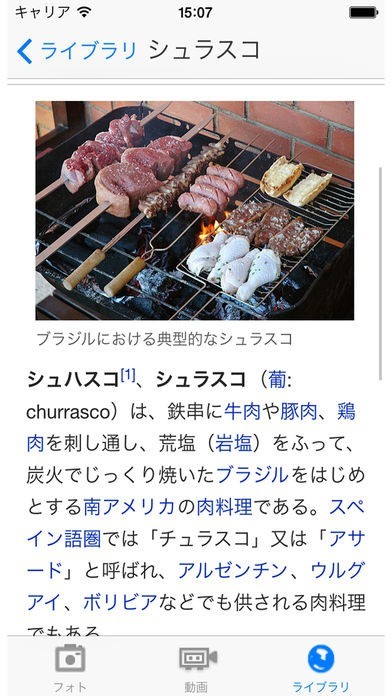 バーベキューWikiライブラリを収録しているので、バーベキューに関する豆知識や詳しい解説などの情報をスマートフォンでチェックすることが出来るようになっています。
