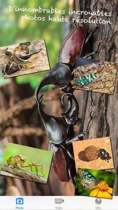 App Storeより引用世界の昆虫たちの動画や写真を楽しむことが出来るアプリ。カブトムシやクワガタ、アゲハチョウ、カマキリといった日本でみられる定番の昆虫だけでなく、軍隊アリのような海外にしか生息しない昆虫まで、幅広い種が収録されています。