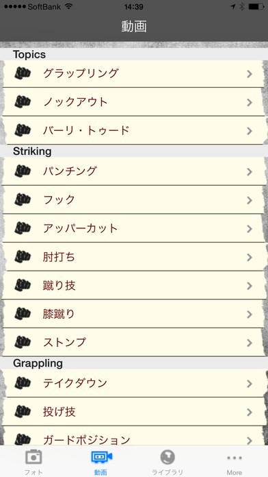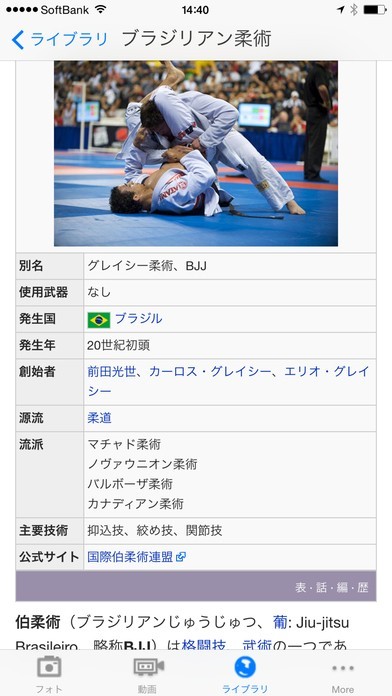 App Storeより引用血湧き肉躍る総合格闘技の世界をiPhoneで!1000を越える動画やフォトを楽しめるアプリです。ブラジリアン柔術、サンボ、空手、柔道、ムエタイ、キックボクシングなど、さまざまなスタイルや技を収録しています。