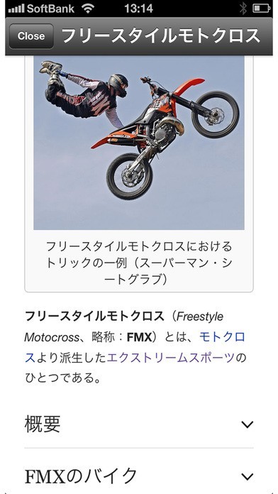 App Storeより引用迫力満点のモトクロス映像をiPhoneで!様々なレースや、高度なトリック、各メーカーの最新車体などを、豊富な動画と写真で楽しめるアプリです。エクストリームスポーツとしても人気が高いモトクロス、究極のテクニックを心ゆくまで堪能してください!