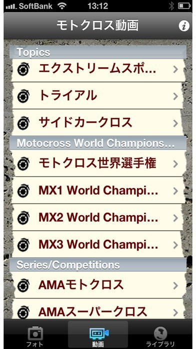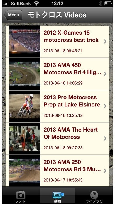 写真、動画の他にも、モトクロスライブラリなど、さまざまな機能をお楽しみいただけます。