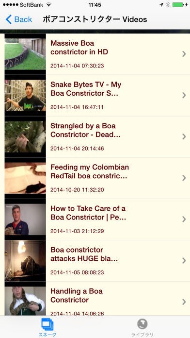 静止した画像だけではなく、動く姿を眺められるような動画機能が備わっています。飼育している様子を始めに様々な蛇に関する映像を見ることができ、一時停止などで理解を深められます。