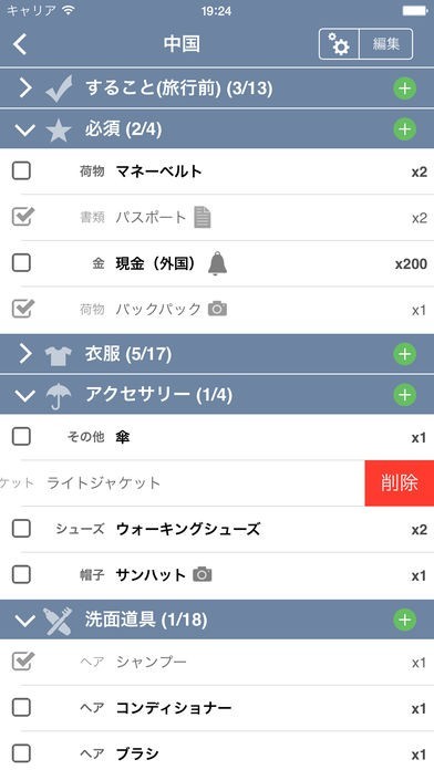 忘れ物が多いので、これを使ってチェックしてます。旅をする機会が多い方には心強いツールですね。操作もシンプルに出来ますよ。