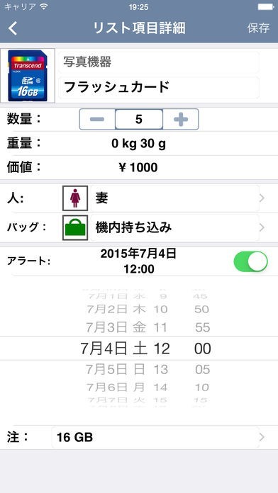 同じような荷物でも使い方や目的によって区別しておきたいことがあります。本アプリでは登録する荷物の名前を自由に設定することができるため、自分が見て最もわかりやすい状態に保存できます。