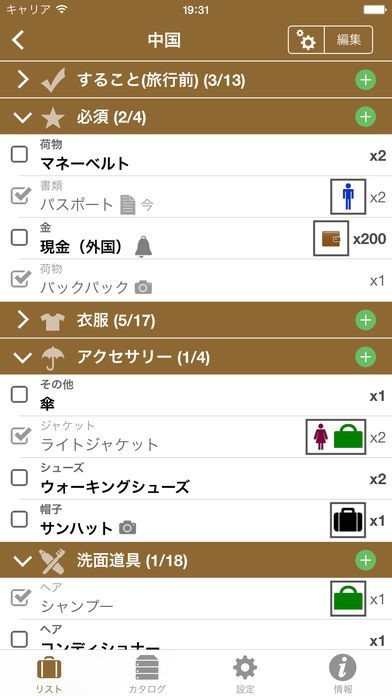 自動で作成してくれるリストは全ての項目をカスタマイズして編集ができる機能があるので趣味の道具を追加しておいたり目的地で使用する物のリストを加えておくなど様々な状況に合わせて使用することができます。