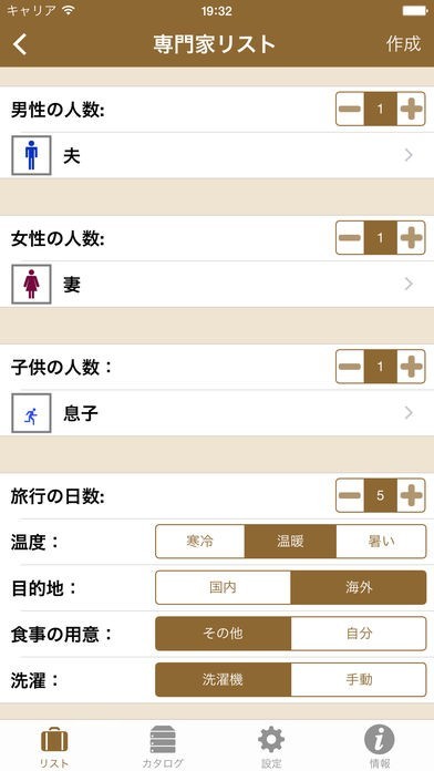 人数や宿泊日数などの条件で自動でパッキングリストを作成してくれる