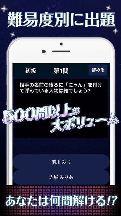App Storeより引用アニメやゲームで大人気のアイドルに関するクイズアプリ