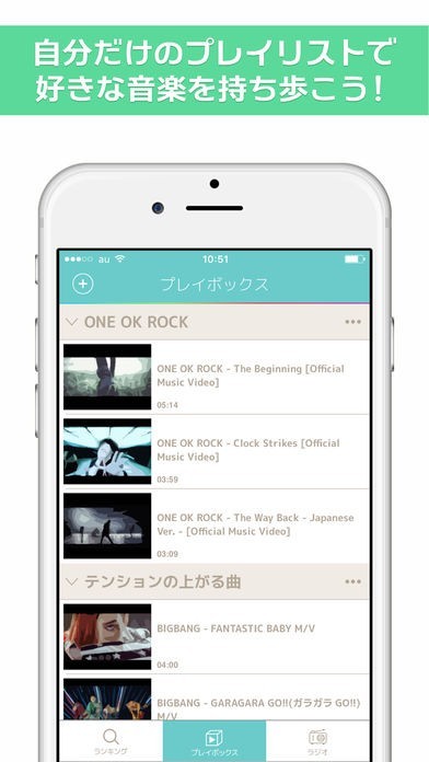 ジャンルや各国ランキングからお気に入りの楽曲を見つけて自分だけのプレイリストを作成することができる!