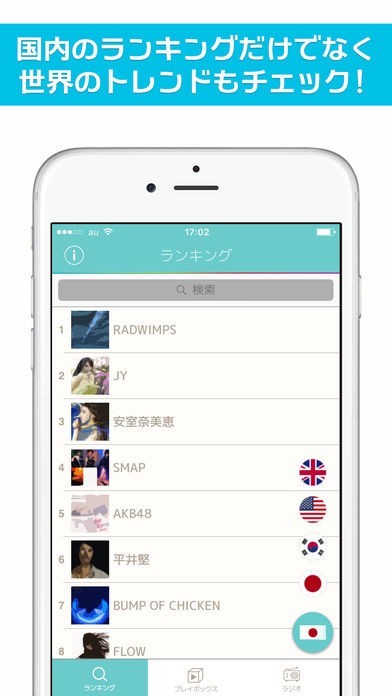ランキングから知らなかった曲を発見。世界各国の音楽やラジオを楽しめる!