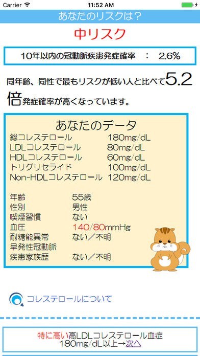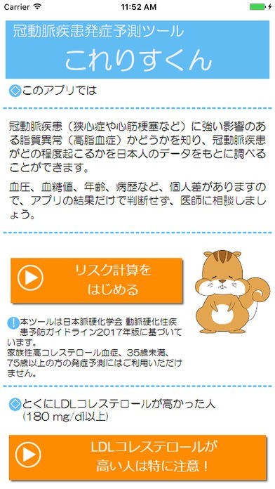 冠動脈疾患発症予測ツール これりすくんのスクリーンショット