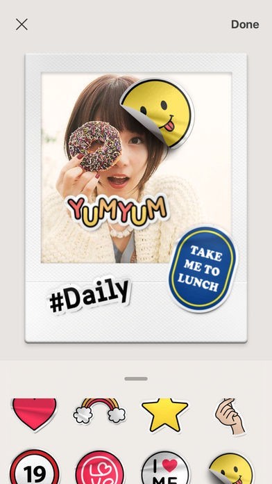 アプリに入っている5つのフィルターやステッカーを使って、写真を可愛くデコレーションすることができます。ステッカーは随時追加されるので、おしゃれに飾ることができます。